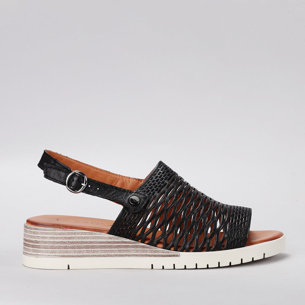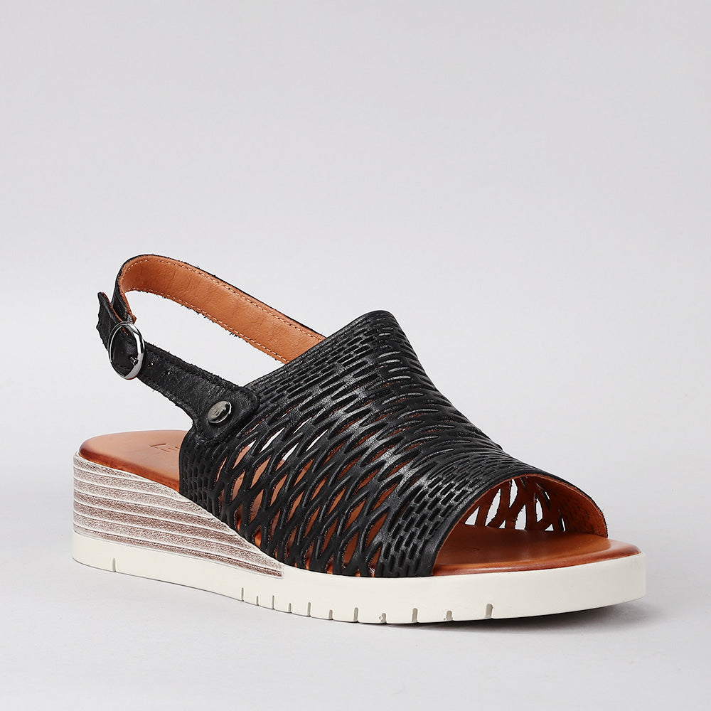 Elevate your summer style with the TOPAZ Sandal. Featuring a breathable laser-cut design, slingback strap with buckle closure, and a lightweight wedge heel, this sandal blends fashion and function effortlessly. Ideal for everyday wear with a touch of elegance.
