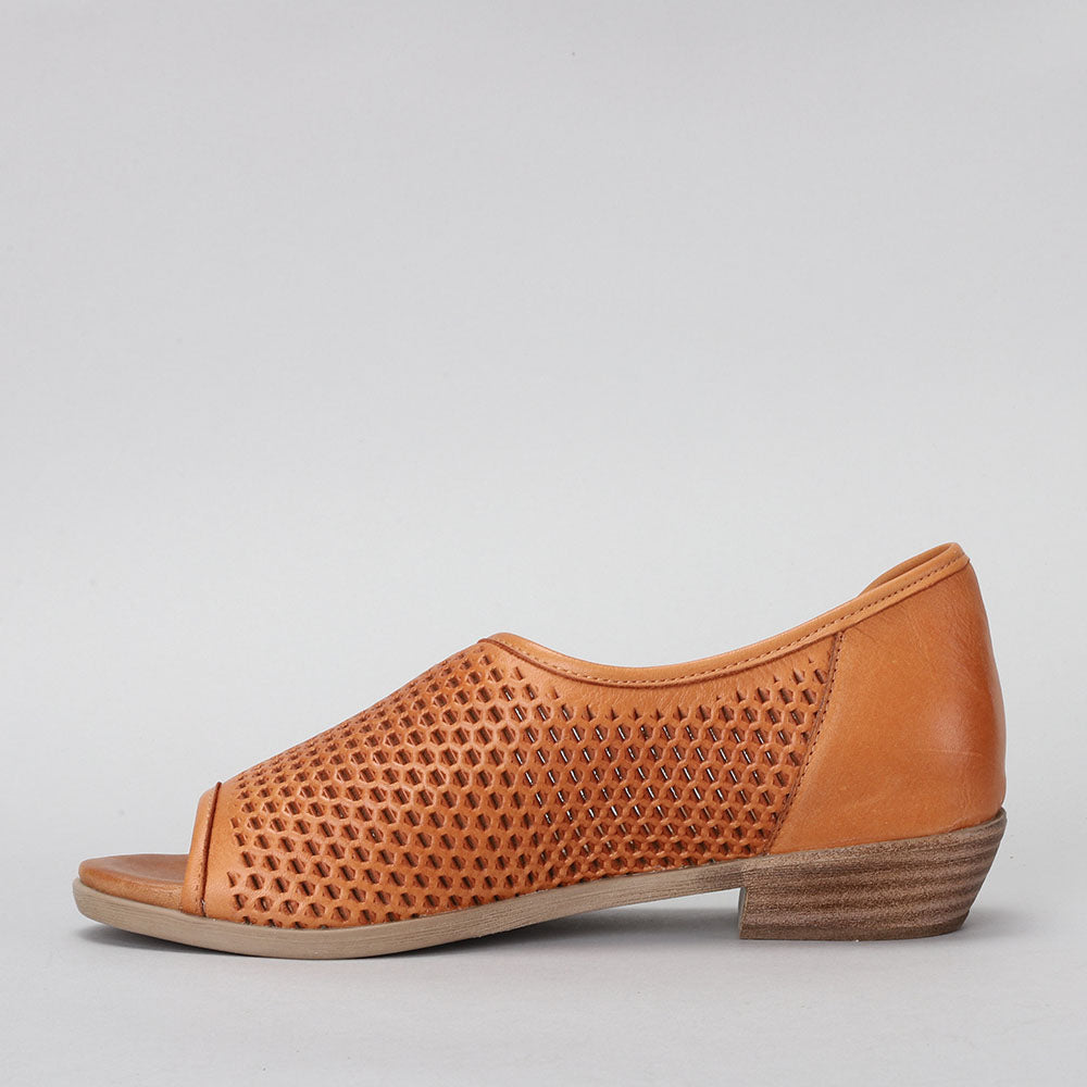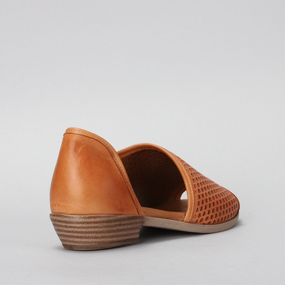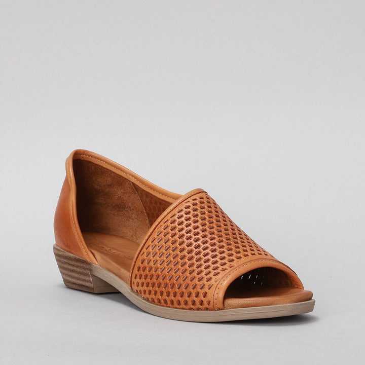 - European influenced, leather peep toe d'Orsay design