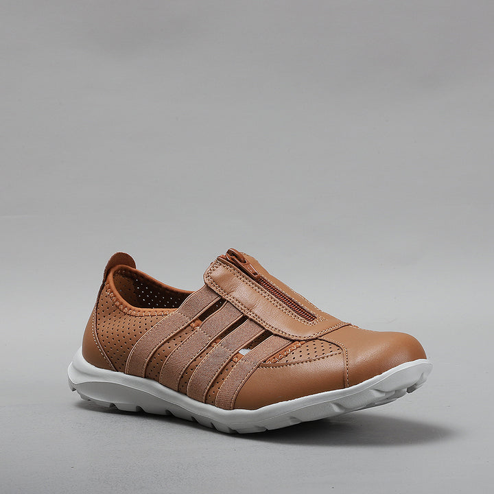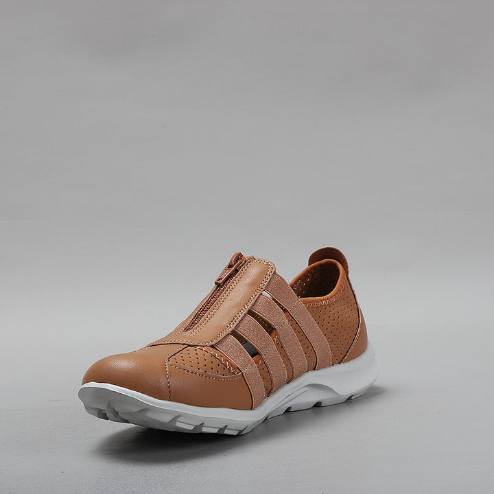 Experience unparalleled comfort with our best-seller Christine, featuring a luxuriously cushioned insole for supreme support. These comfortable, lightweight shoes boast a leather upper, complemented by a central zipper for effortless slip on. Designed with a breathable non-leather lining and a durable rubber sole, plus a removable latex sock for added convenience. Available in various designs and colors, they're perfect for women on the go, offering stylish versatility for all-year wear.