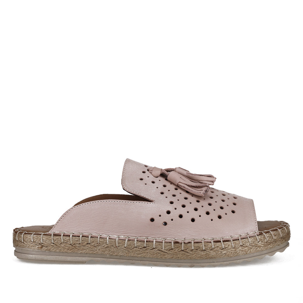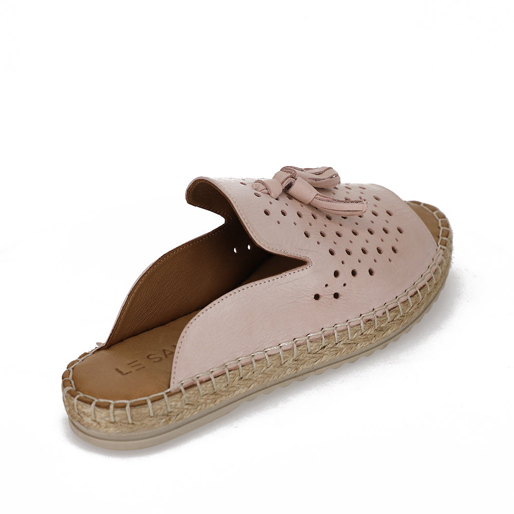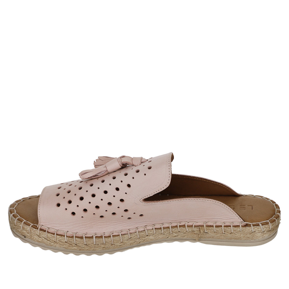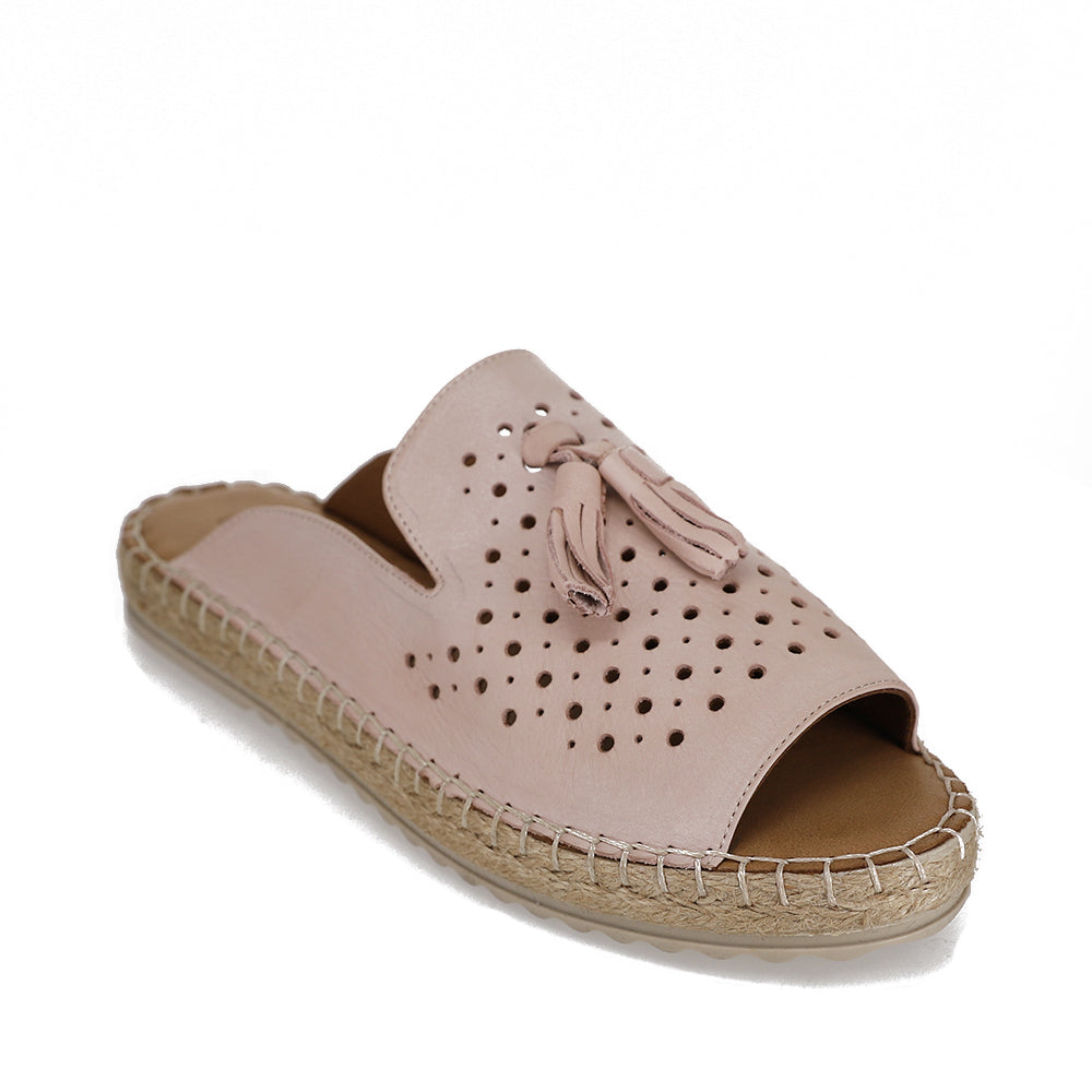 The Dolonda is an espadrille-style slip-on sandal featuring a perforated upper and decorative tassels. It combines casual comfort with a touch of elegance, making it perfect for everyday wear. The braided jute midsole and flexible outsole provide a relaxed yet stylish look.