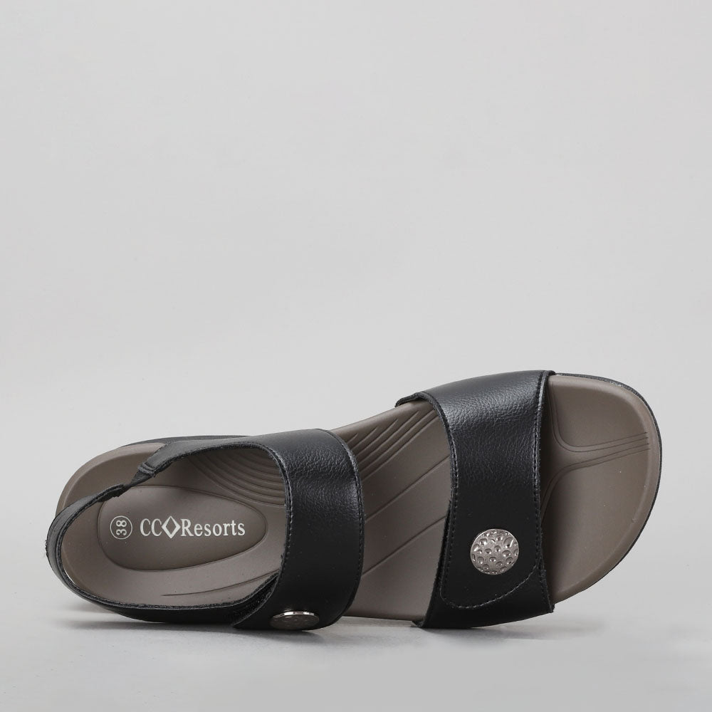 Faos two strap leather sandal. Hanging by the pool or exploring the city - new sandal Faos has endless styling possibilities. The minimalist upper with velcro straps, crafted from non-leather is combined with a chunky outsole for immediate urban style impact.