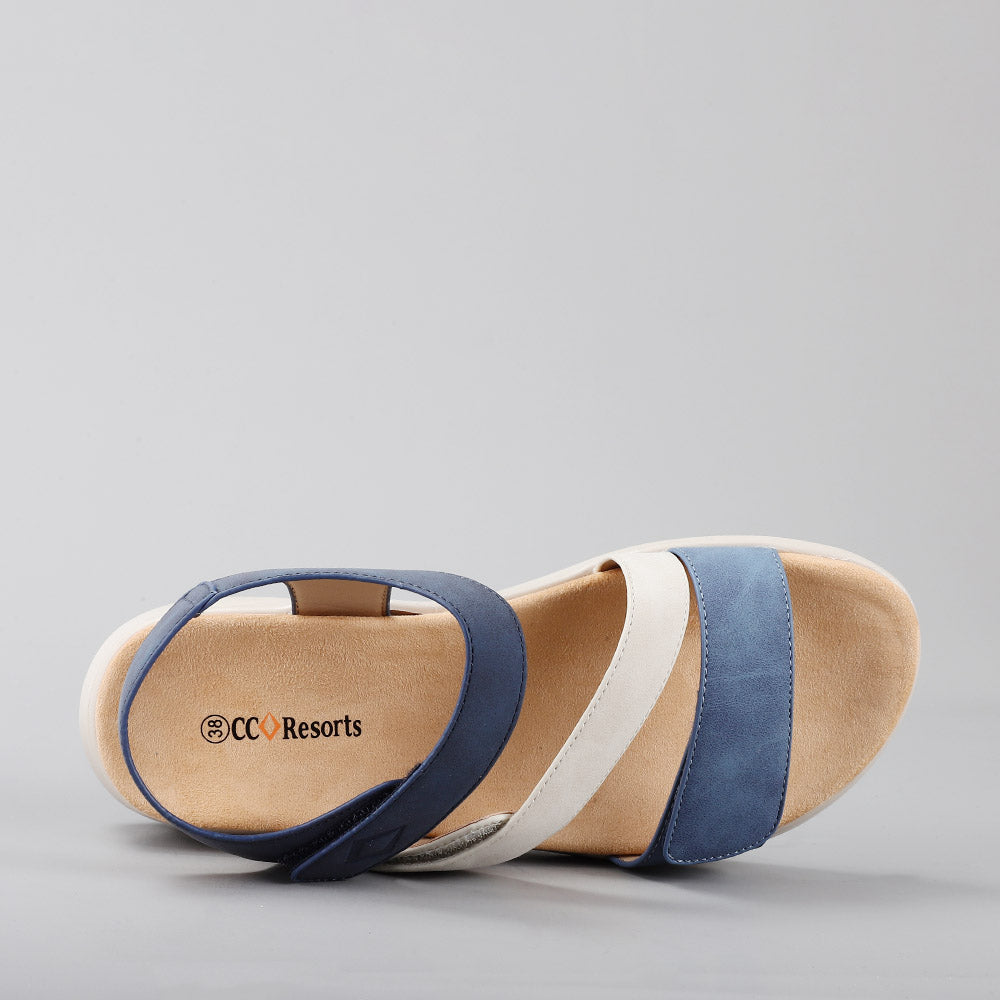 • Multi-strap comfort sandal with modern colour-block design