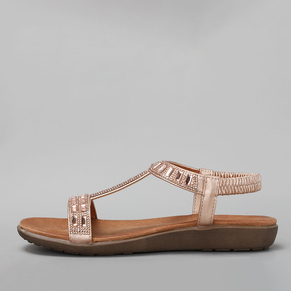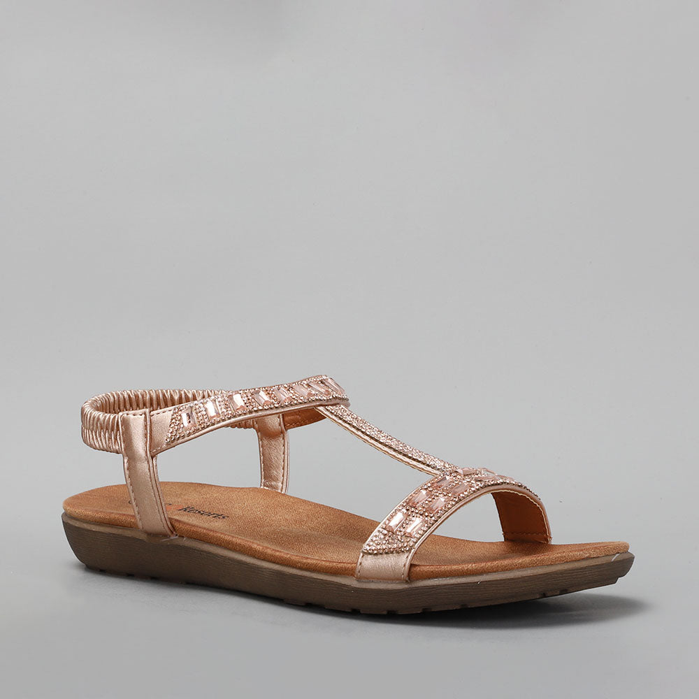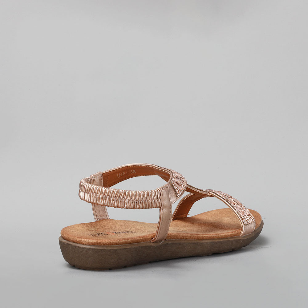Step into effortless style with Usha. This chic, embellished sandal features a cushioned footbed and a flexible sole, perfect for all-day comfort and glam.