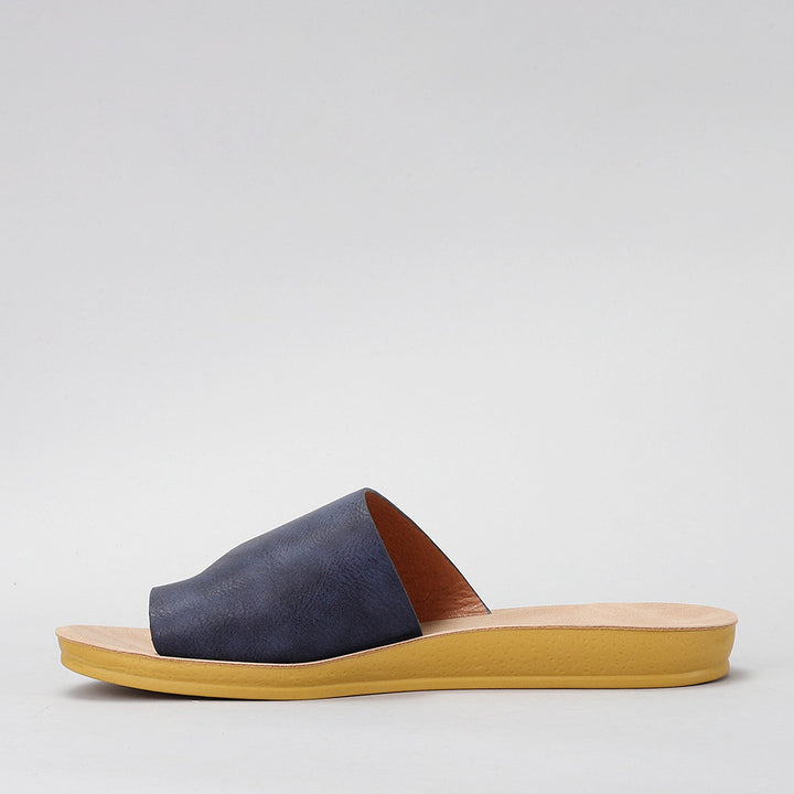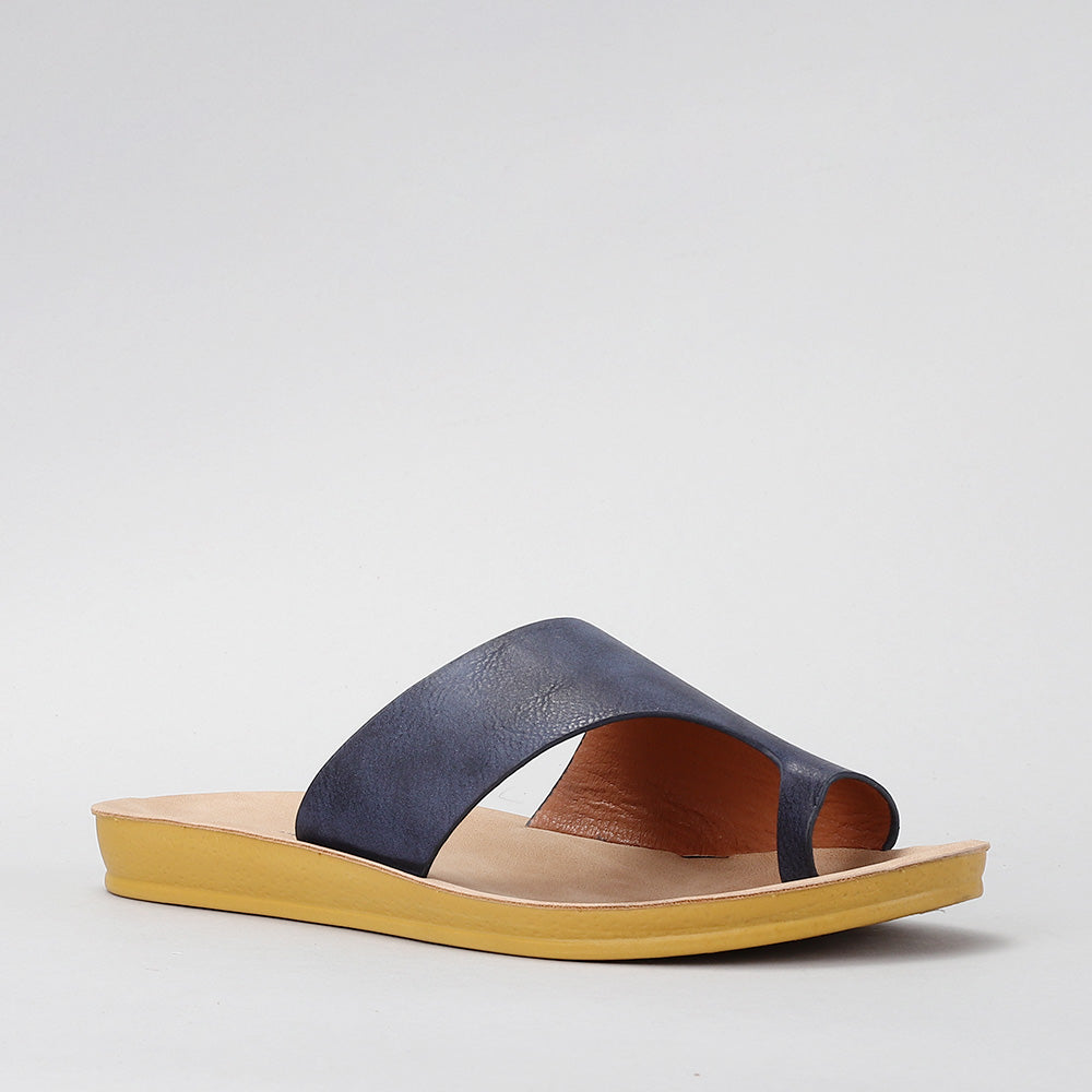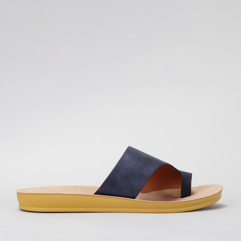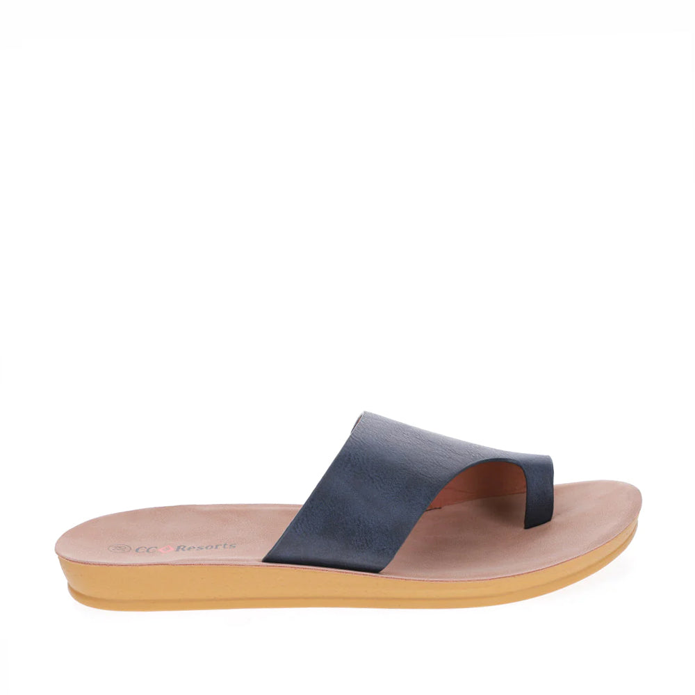 For fashionable feet this season, you need an asymmetrical sandal style! This slide from CC RESORTS has an individual toe loop and a broad strap that covers the rest of the foot. Get holiday vibes in this design, paired with shorts and statement jewellery.
